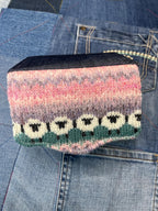 A unique clutch made with love. This Pink Lilac Sheep Mini Clutch by Uphouse Crafts has a hand-knit panel of Shetland Wool Fair Isle knitting incorporated into the flap of the purse. Each flap is unique and only ever has 2-3 of a similar colour palette and stitch design.