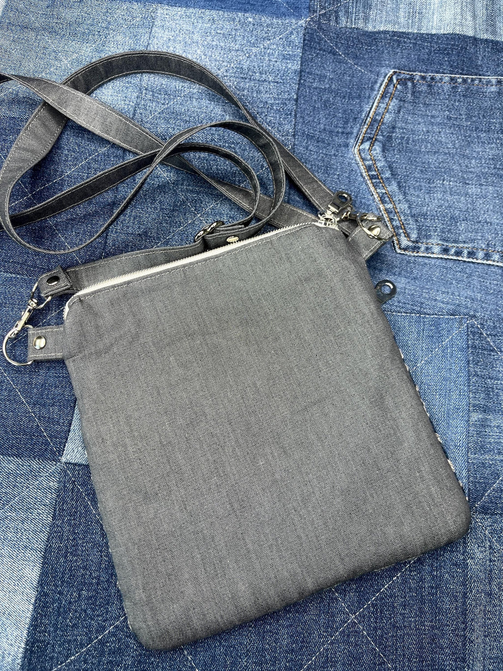 This stylish crossbody bag from Uphouse Crafts boasts two zip pockets and an adjustable crossbody strap.